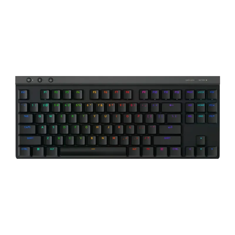 این کیبورد با سه حالت اتصال LIGHTSPEED بیسیم (تأخیر ۱ میلیثانیه)، بلوتوث و باسیم، انعطافپذیری بینظیری برای اتصال به دستگاههای مختلف ارائه میدهد. باتری لیتیوم پلیمری با عمر تا ۴۰ ساعت (با غیرفعال بودن نورپردازی) و ۱۵ ساعت (با فعال بودن نورپردازی RGB) امکان بازی بیوقفه را فراهم میکند. نورپردازی LIGHTSYNC RGB با ۱۶.۸ میلیون رنگ و قابلیت شخصیسازی هر کلید از طریق نرمافزار Logitech G HUB، تجربه بصری غنی ایجاد میکند.